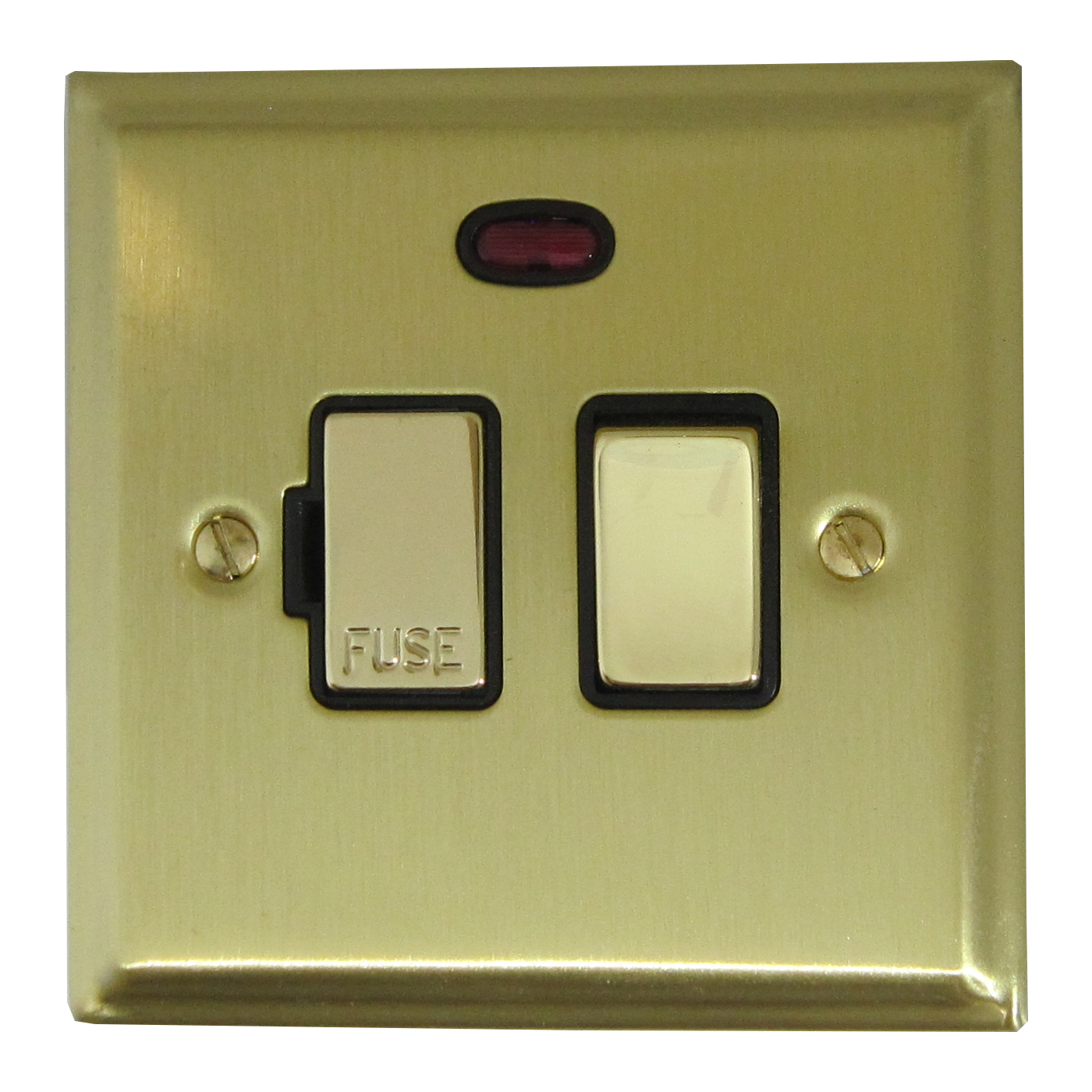 Deco Satin Brass Switched Fused Spur with Neon (Brass Switch) - G+H DSB327