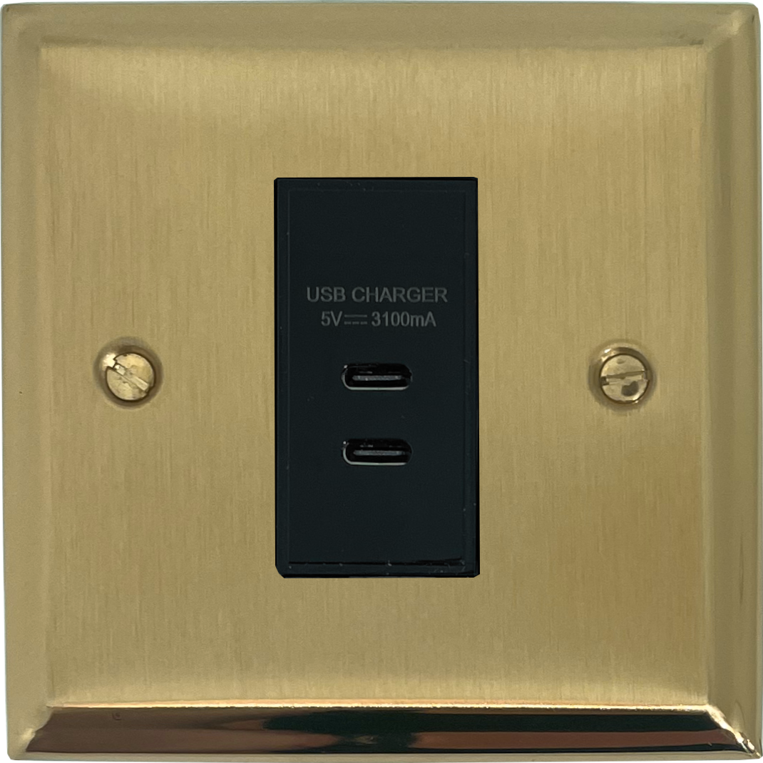 Deco Satin Brass USB Charger (2x USB-C) (1 Gang/Black Insert) - G+H DSB42B
