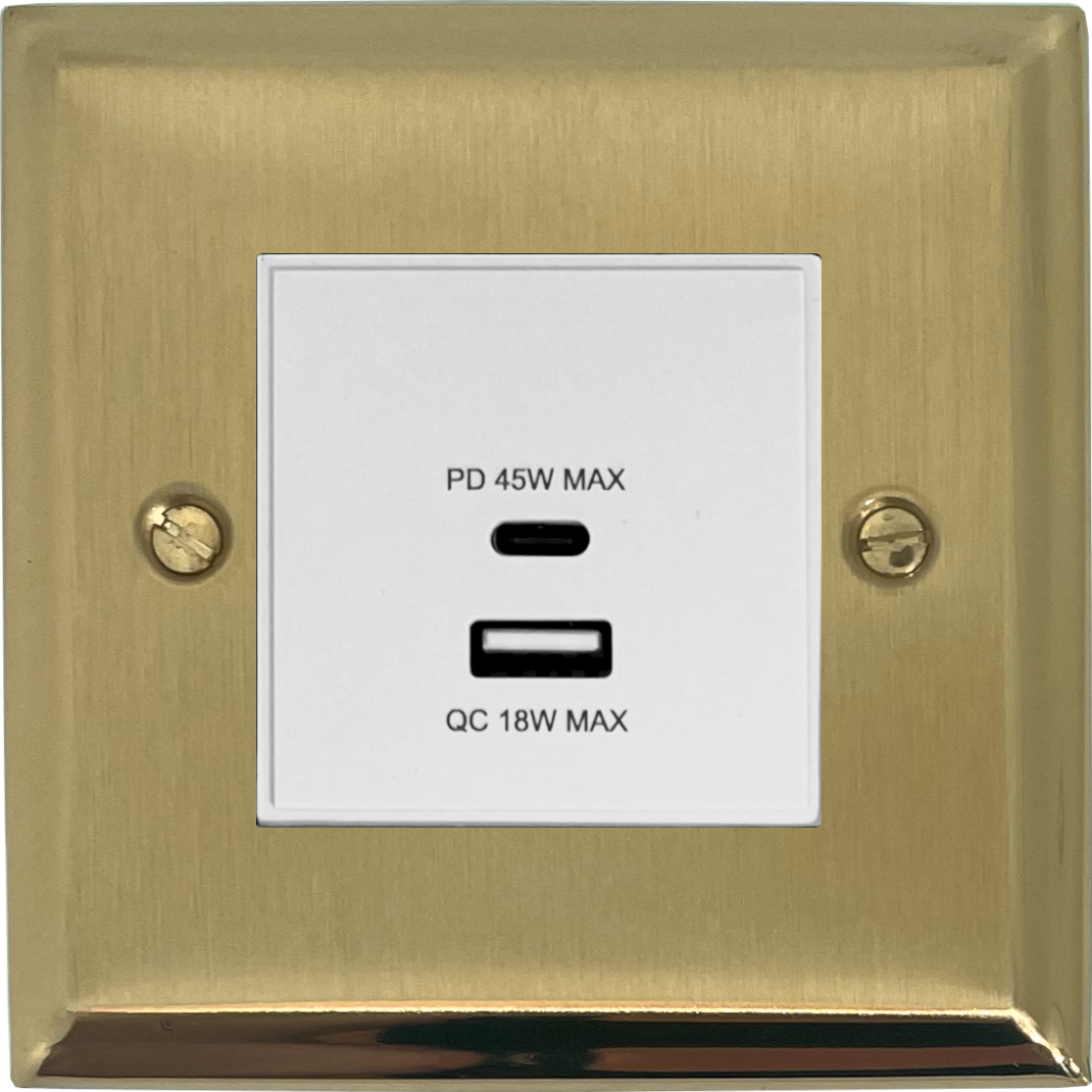 Deco Satin Brass USB Charger (Dual USB A + C Quick Charge) (1 Gang/White Insert) - G+H DSB43W