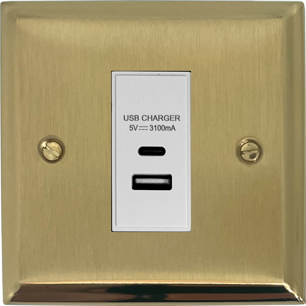Deco Satin Brass USB Charger (USB-A and USB-C) (1 Gang/White Insert) - G+H DSB41W