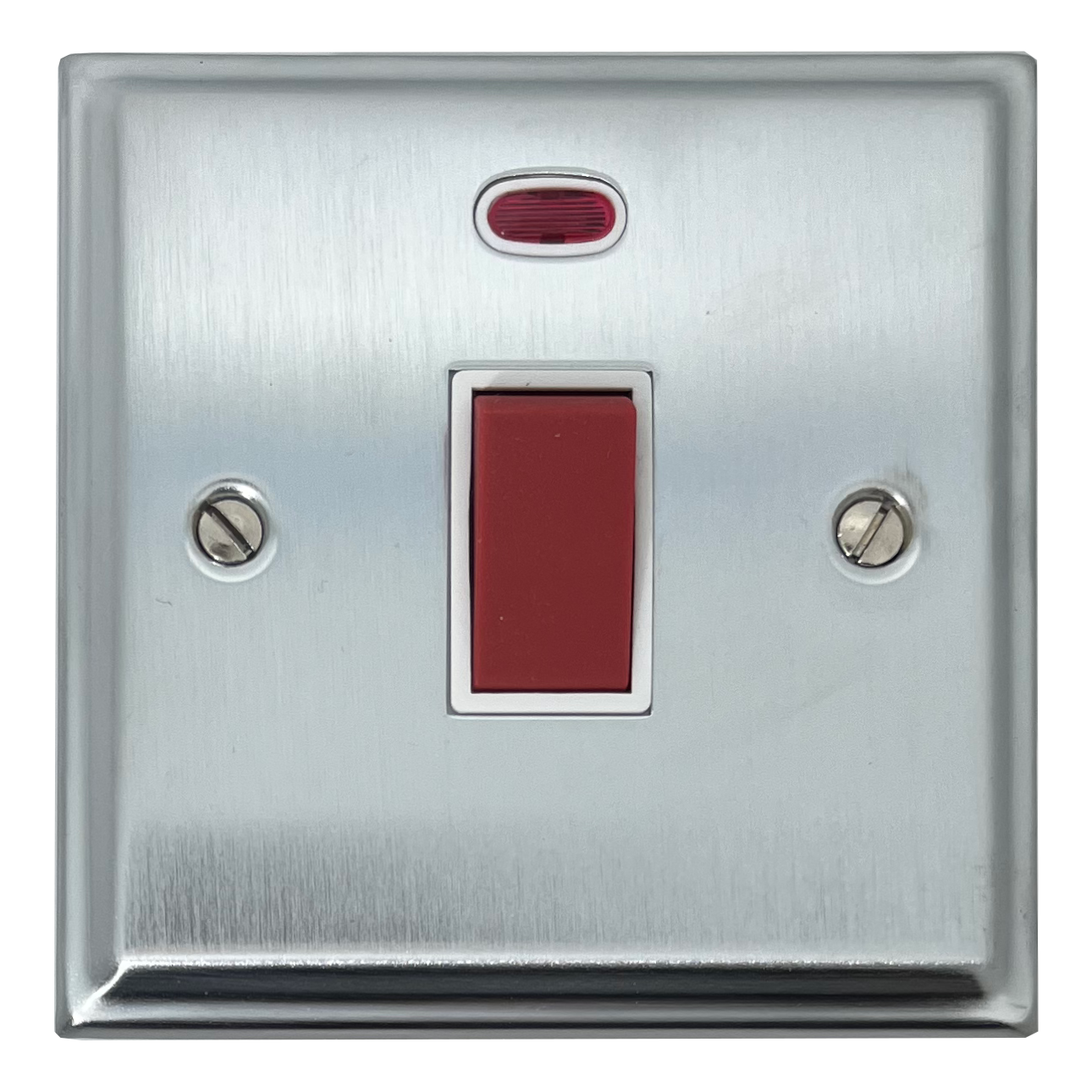 Deco Satin chrome 45A DP Switch with Neon (White Insert/Red Switch)