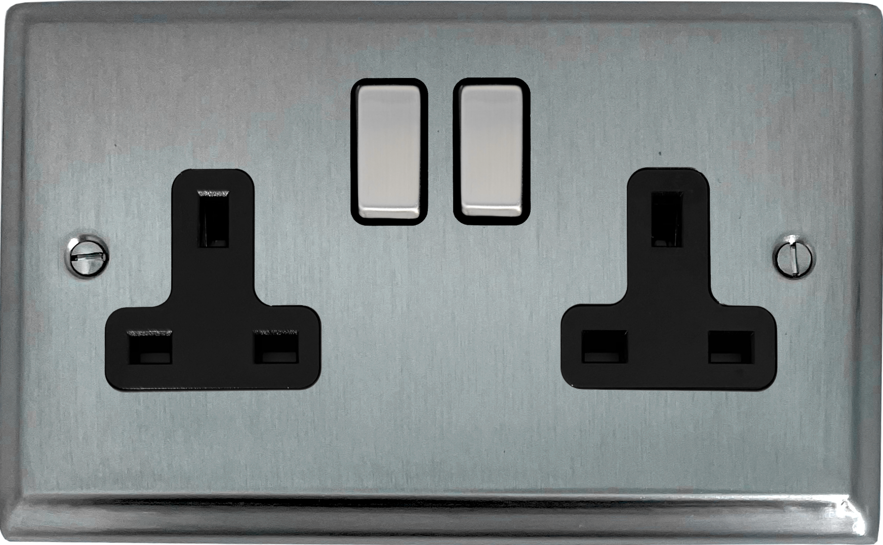 Deco Satin Chrome Double Socket (Black Insert/Matching Switch) - G+H PIN30SS