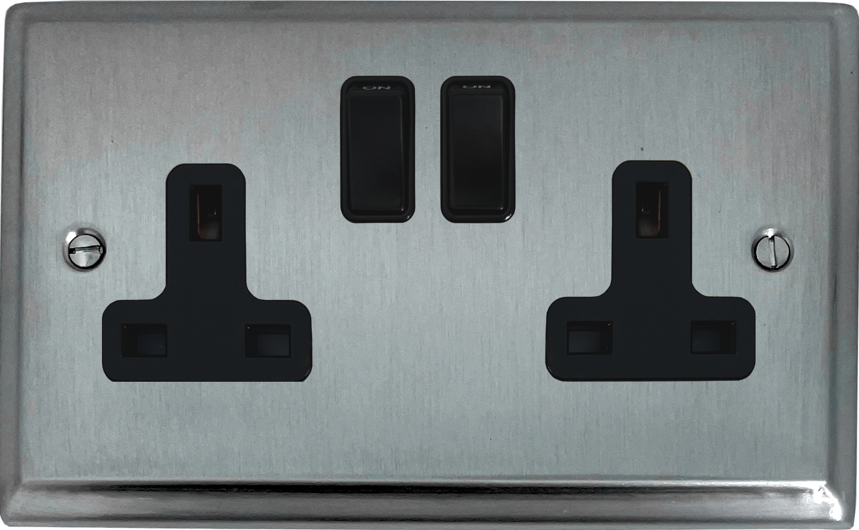 Deco Satin chrome Double Socket (Black Switch) - G+H DSC10B