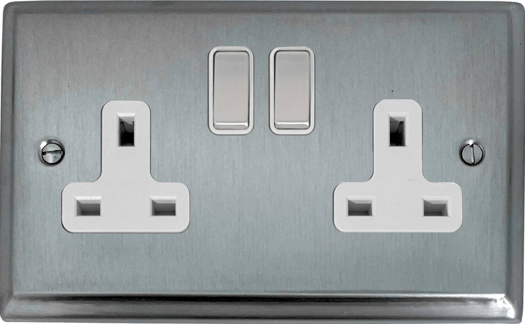 Deco Satin Chrome Double Socket (White Insert/Matching Switch) - G+H DSC210
