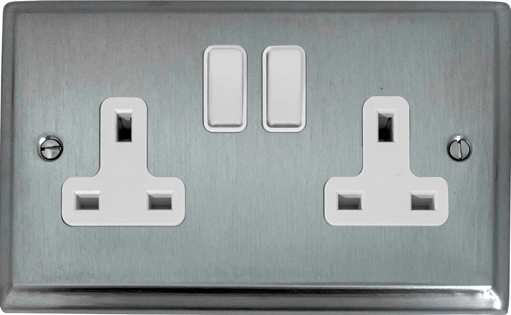 Deco Satin chrome Double Socket (White Switch) - G+H DSC10W