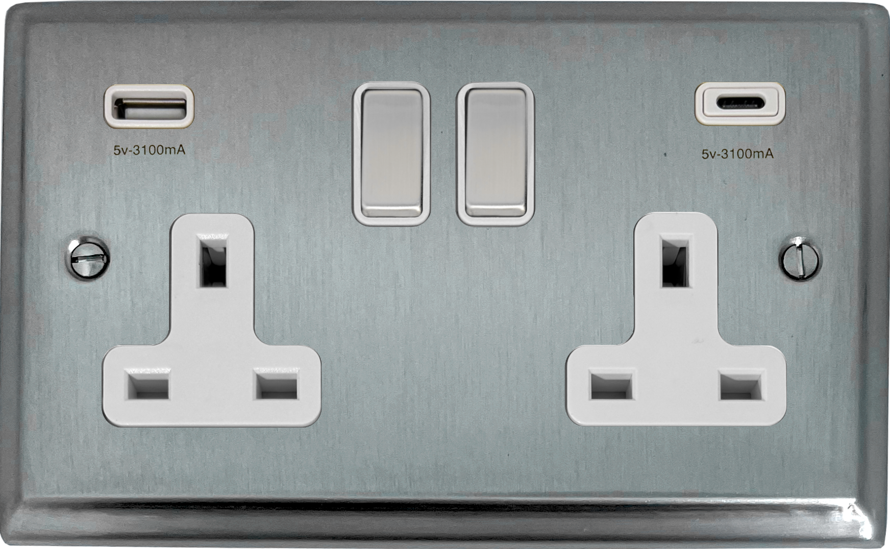 Deco Satin chrome Double Socket with USB (USB-A and USB-C/White Insert/Matching Switch) - G+H DSC2911
