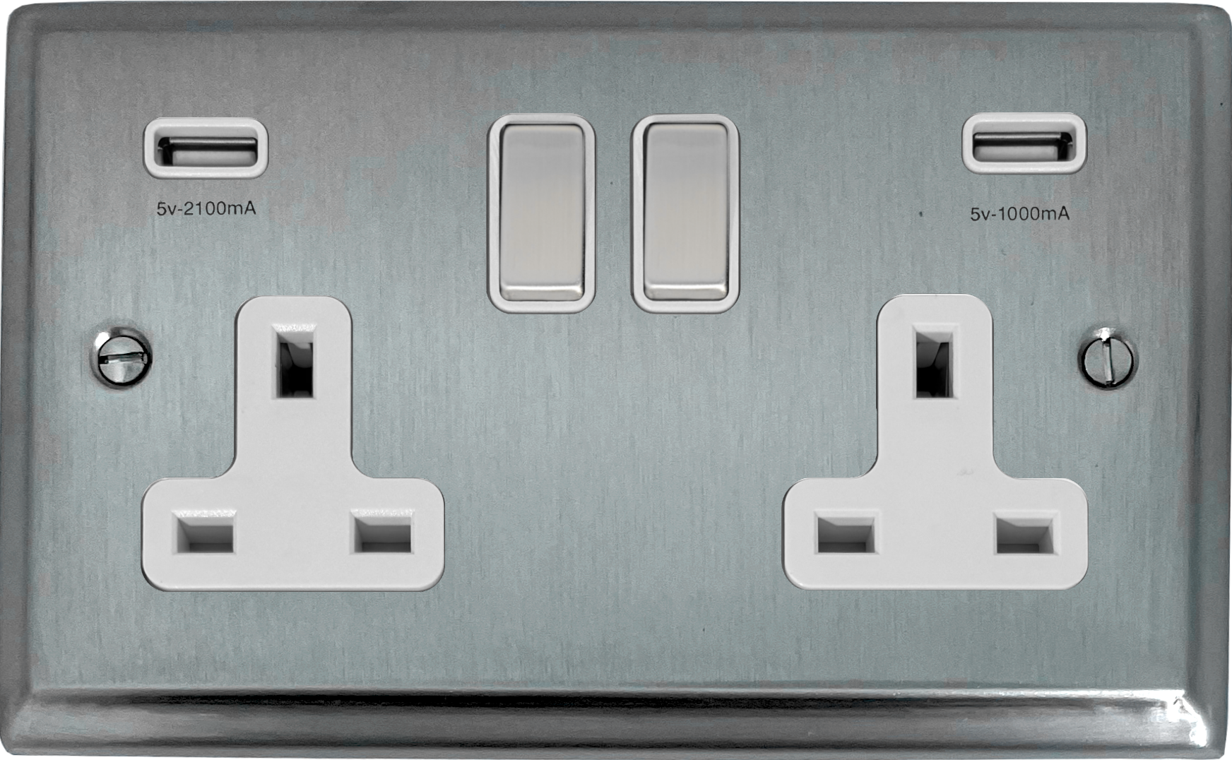 Deco Satin Chrome Double Socket with USB (White Insert/Matching Switch) - G+H DSC2910