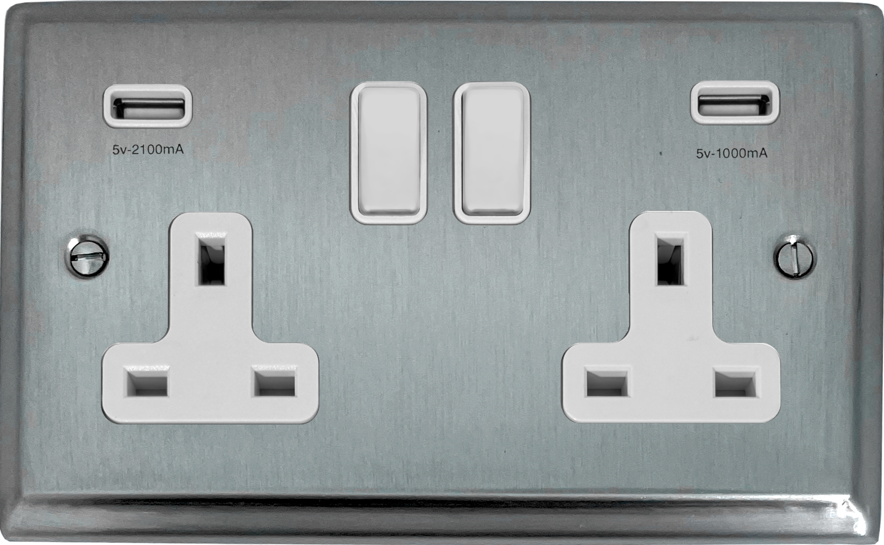 Deco Satin chrome Double Socket with USB (White Switch) - G+H DSC910W