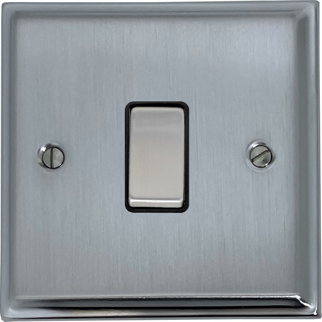 Deco Satin Chrome Light Switch (1 Gang/Black Insert/Matching Switch) - G+H DSC301