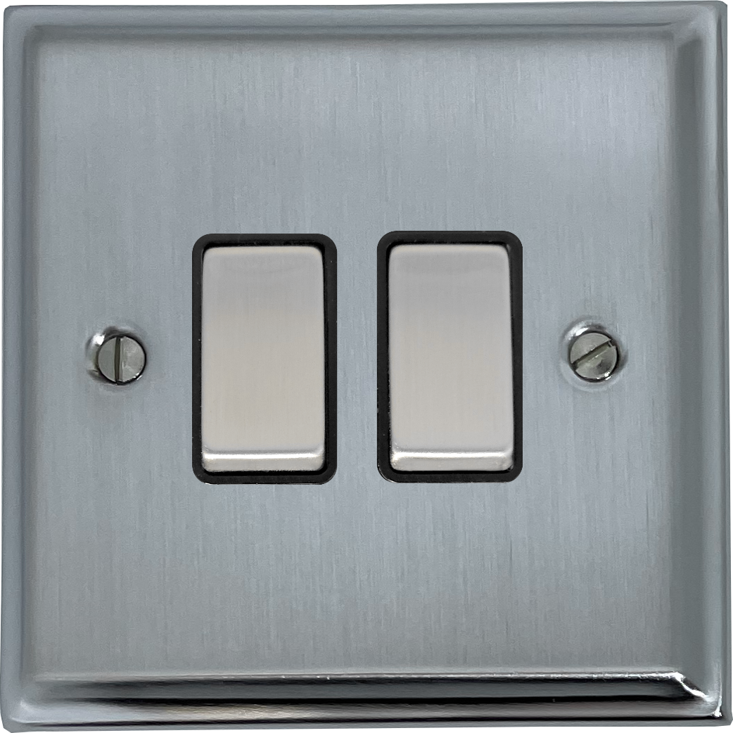Deco Satin Chrome Light Switch (2 Gang/Black Insert/Matching Switch) - G+H DSC302