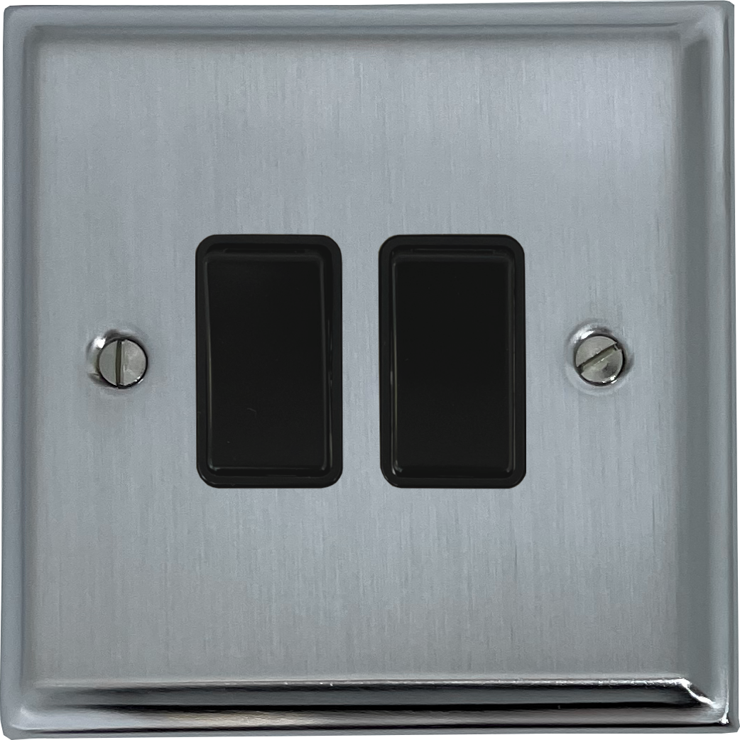 Deco Satin chrome Light Switch (2 Gang/Black Switch) - G+H DSC2B