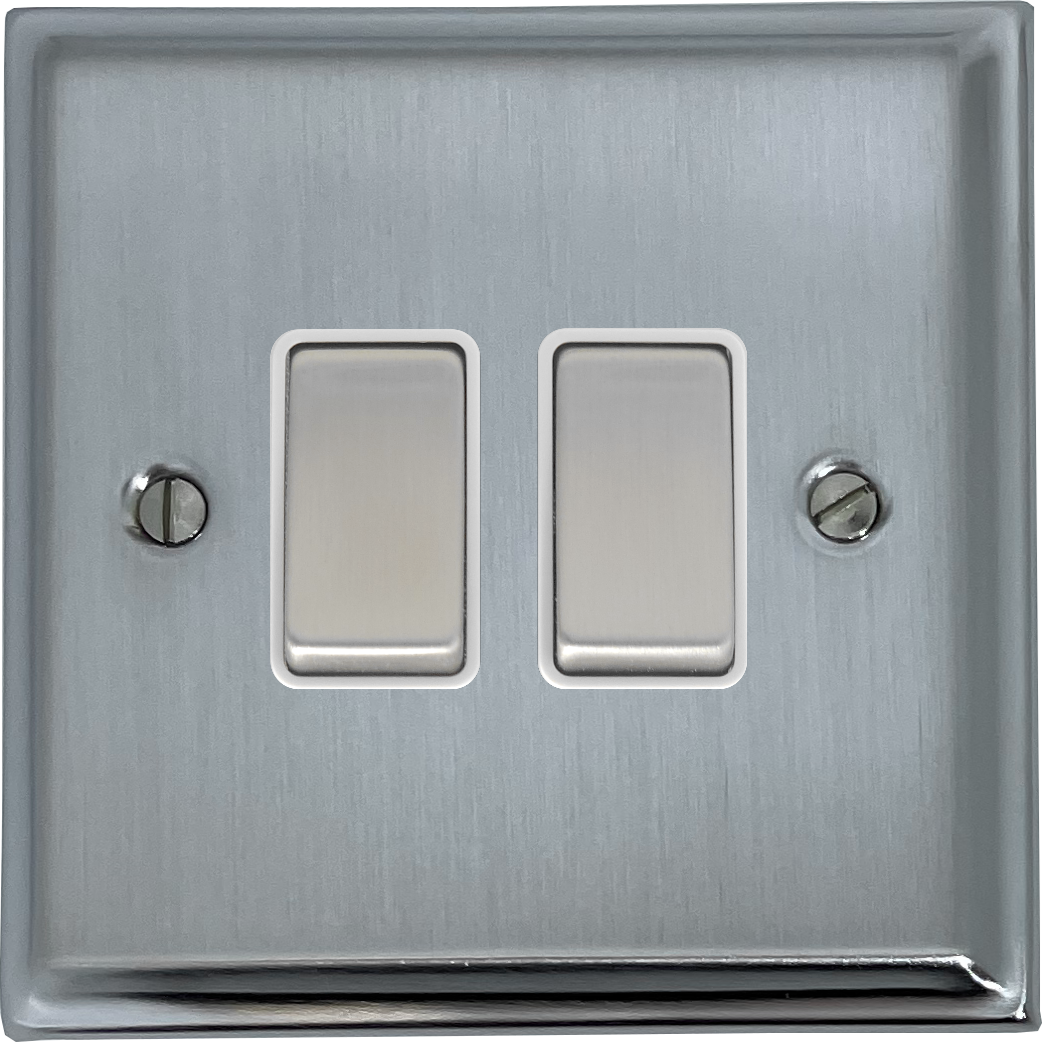 Deco Satin Chrome Light Switch (2 Gang/White Insert/Matching Switch) - G+H DSC202
