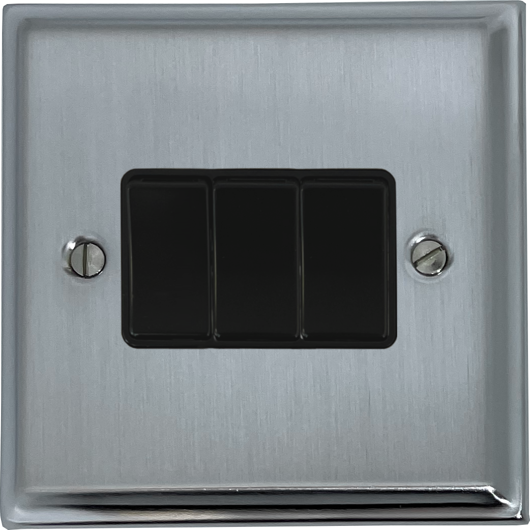 Deco Satin chrome Light Switch (3 Gang/Black Switch) - G+H DSC3B