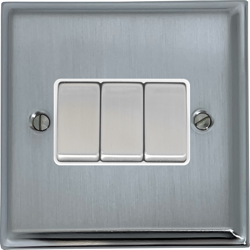 Deco Satin Chrome Light Switch (3 Gang/White Insert/Matching Switch) - G+H DSC203