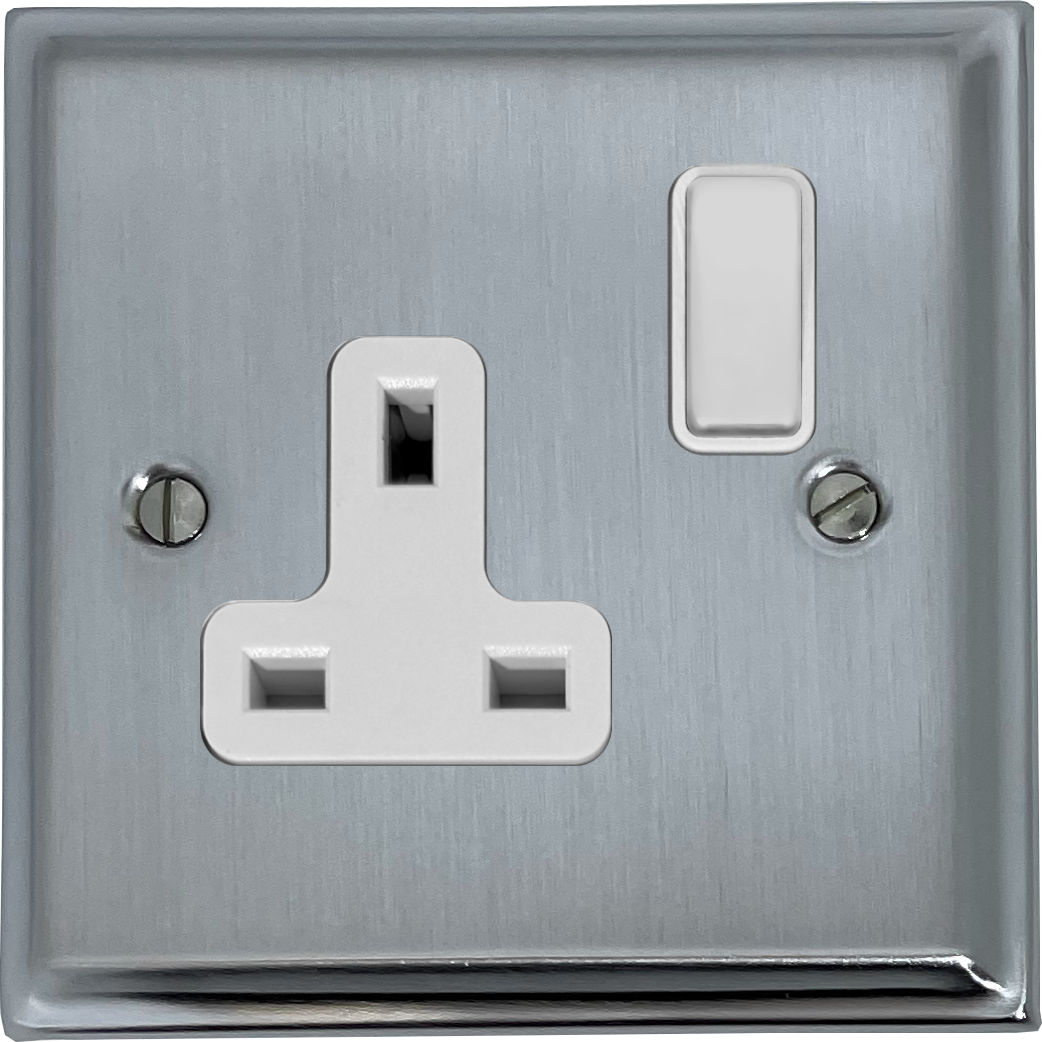 Deco Satin chrome Single Socket (White Switch) - G+H DSC9W