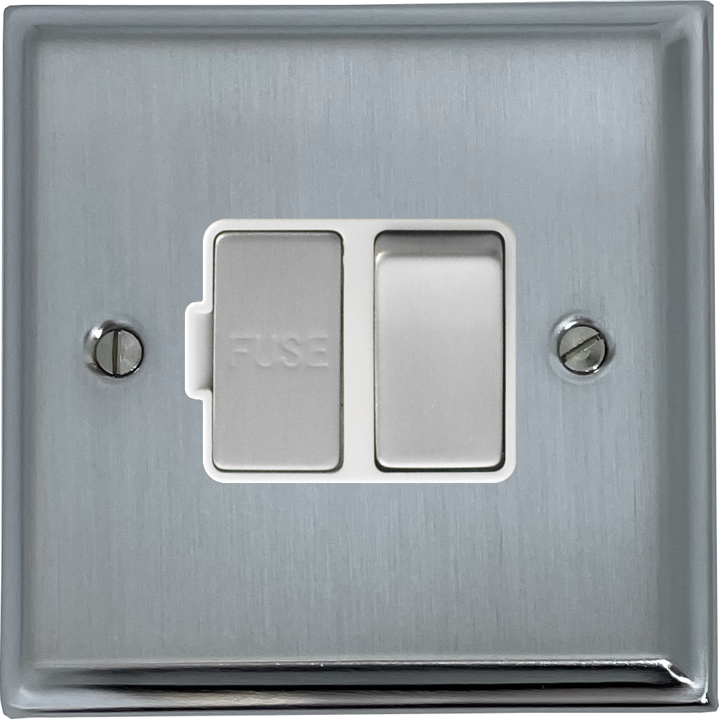 Deco Satin Chrome Switched Fused Spur (White Insert/Matching Switch) - G+H DSC257