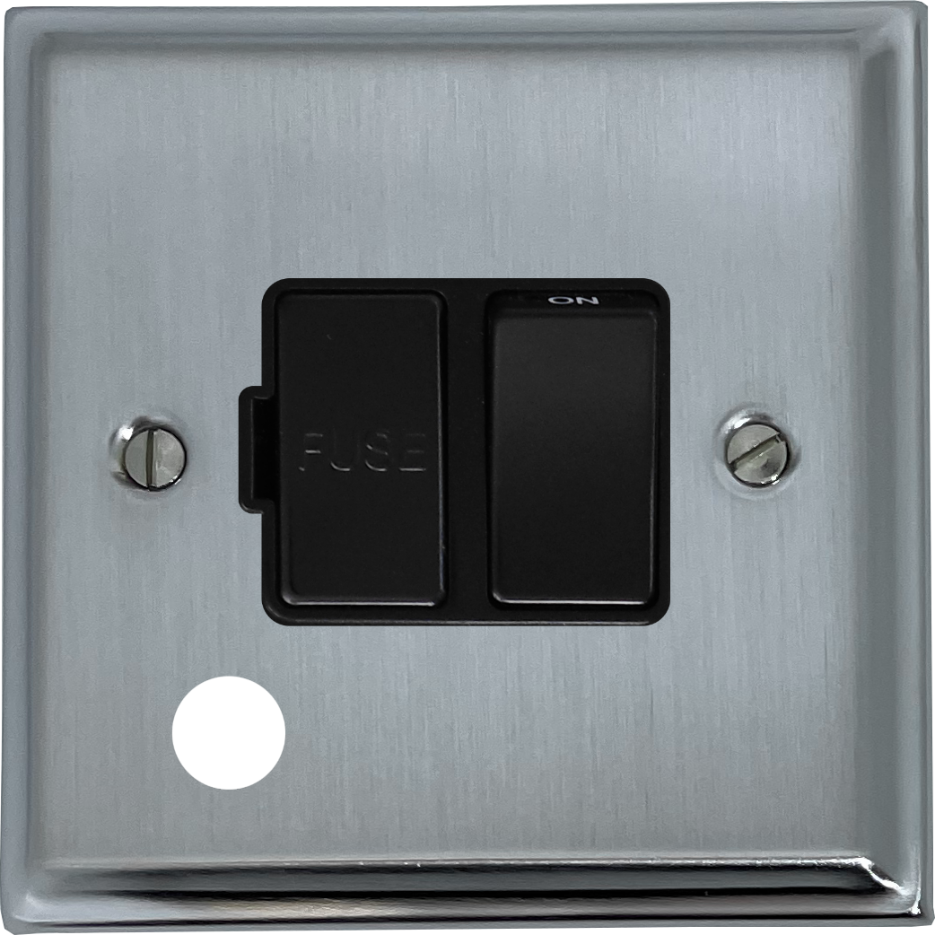 Deco Satin chrome Switched Fused Spur with Flex Outlet (Black Switch) - G+H DSC56B