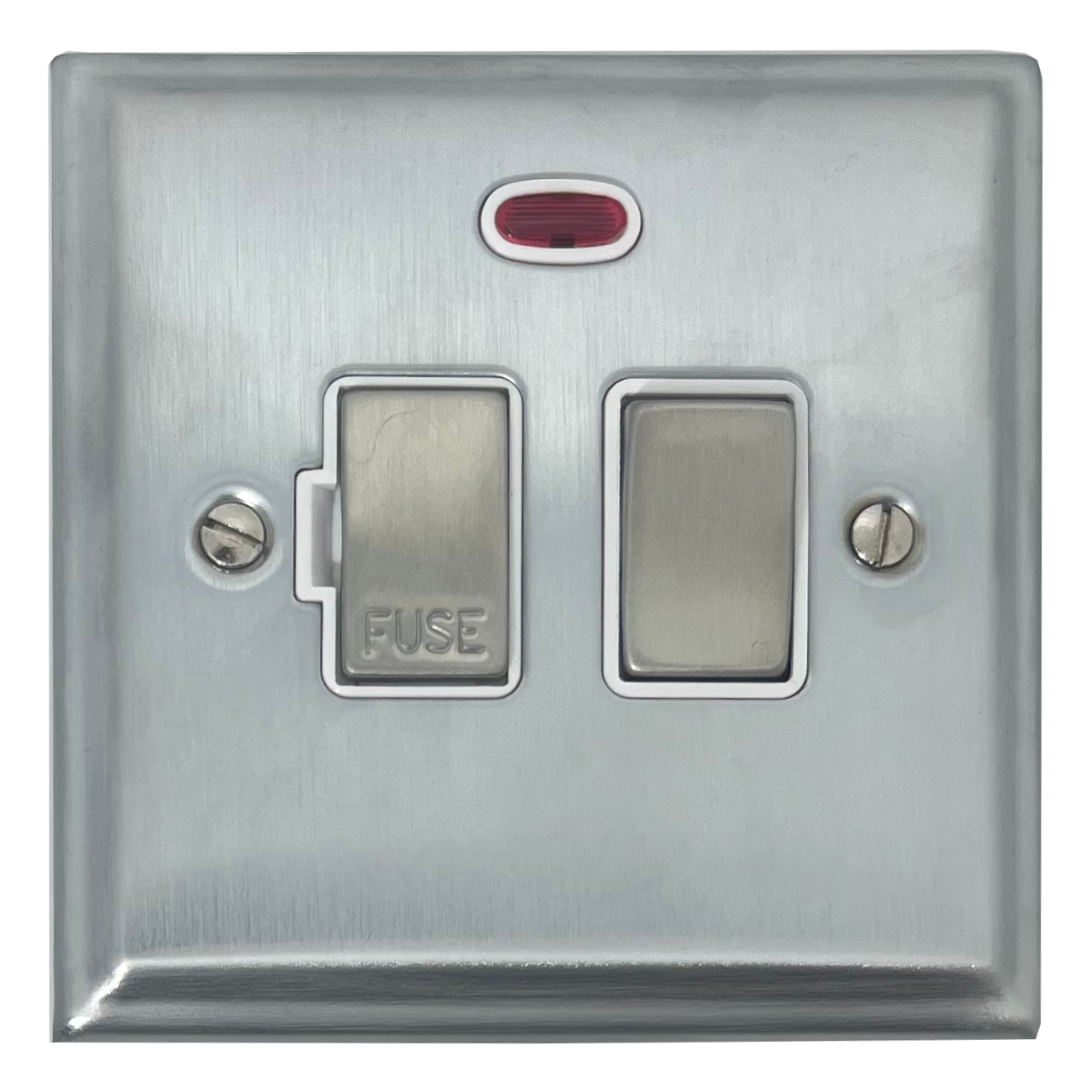 Deco Satin Chrome Switched Fused Spur with Neon (White Insert/Matching Switch) - G+H DSC227