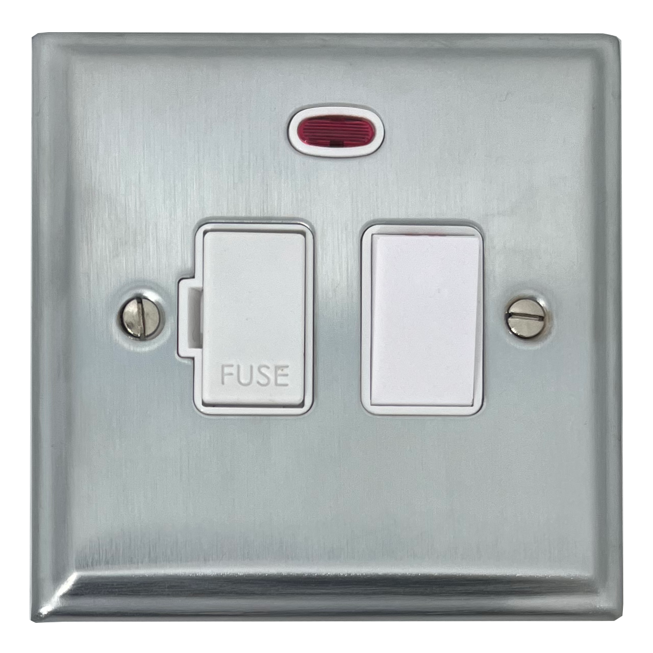 Deco Satin chrome Switched Fused Spur with Neon (White Switch) - G+H DSC27W