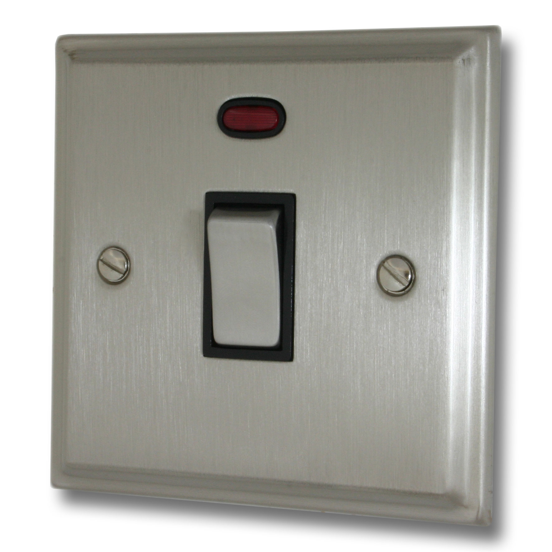 Deco Satin Nickel 20A DP Switch with Neon (Black Insert/Matching Switch) - G+H DSN326