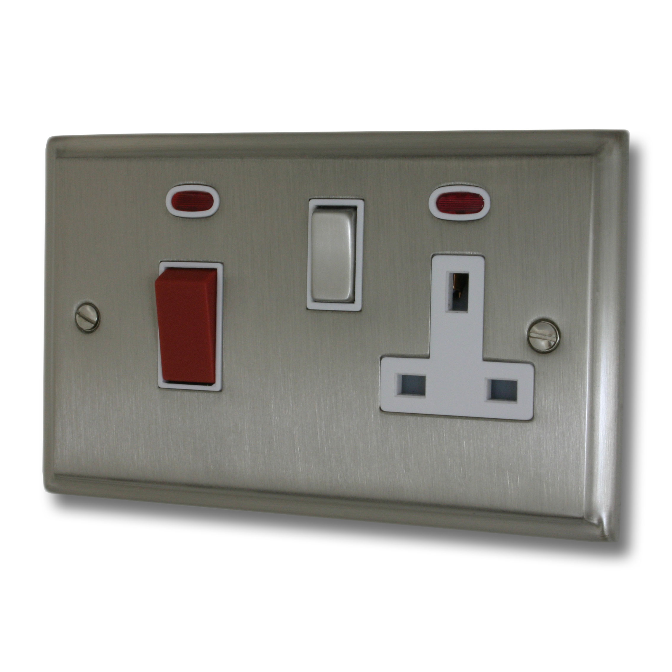 Deco Satin Nickel Cooker Switch with Socket (White Insert/Matching Switch)