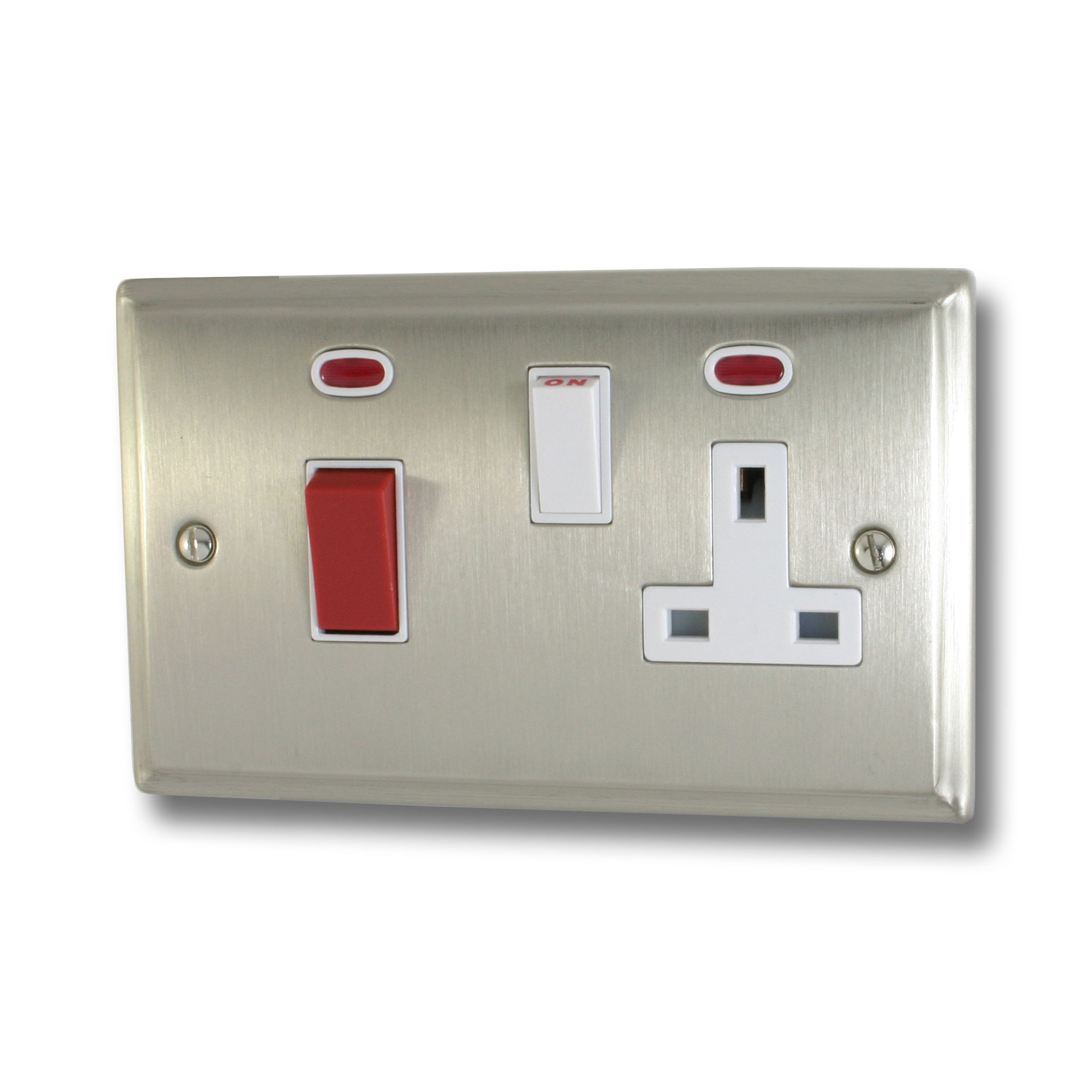 Deco Satin Nickel Cooker Switch with Socket (White Switch)