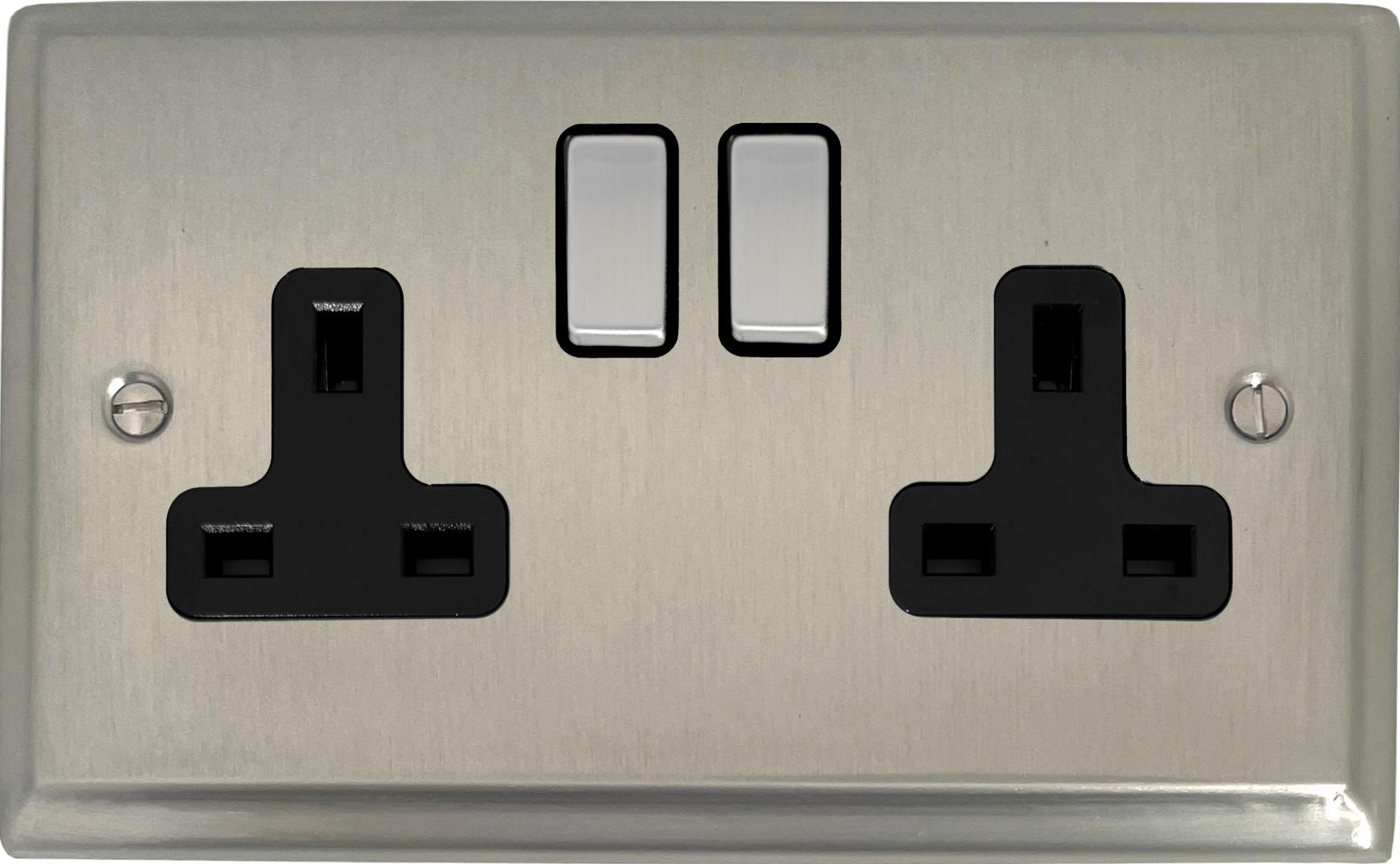 Deco Satin Nickel Double Socket (Black Insert/Matching Switch) - G+H DSN310