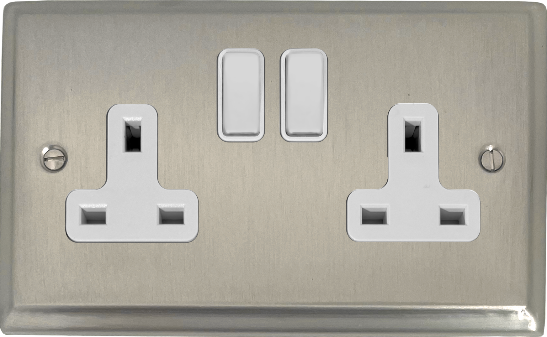 Deco Satin Nickel Double Socket (White Switch) - G+H DSN10W