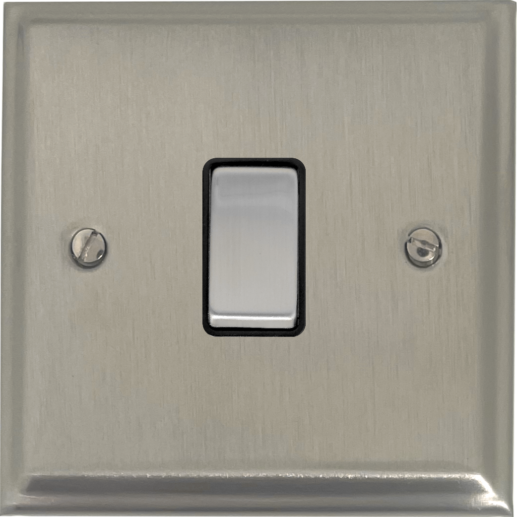 Deco Satin Nickel Light Switch (1 Gang/Black Insert/Matching Switch) - G+H DSN301