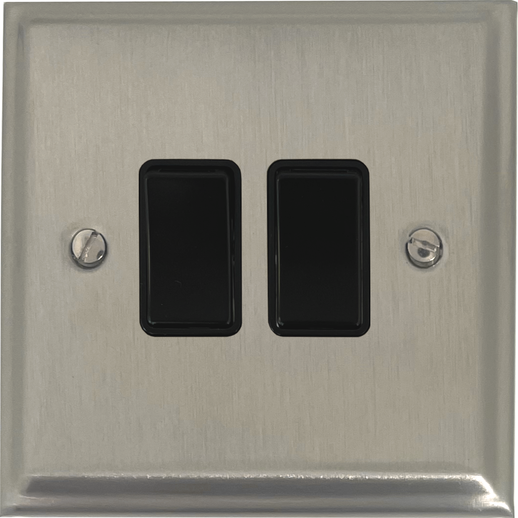 Deco Satin Nickel Light Switch (2 Gang/Black Switch) - G+H DSN2B