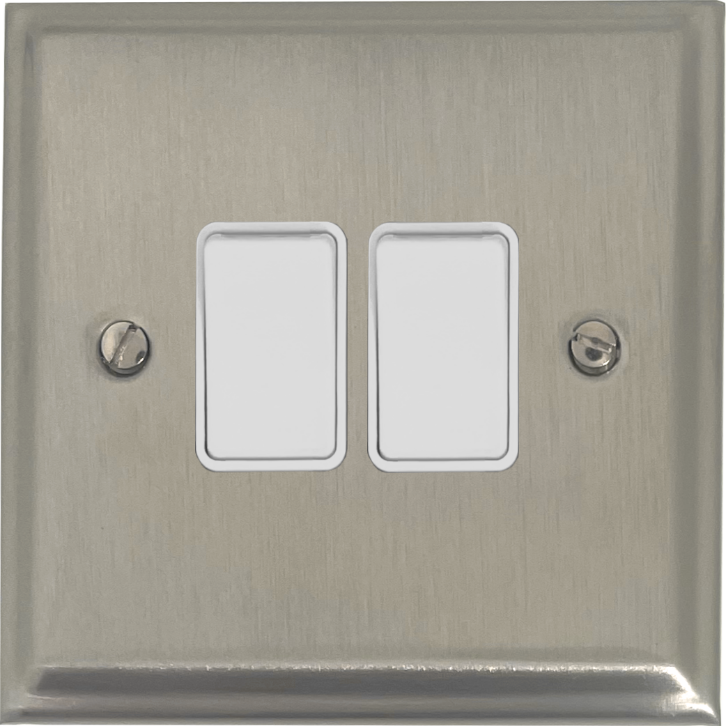 Deco Satin Nickel Light Switch (2 Gang/White Switch) - G+H DSN2W