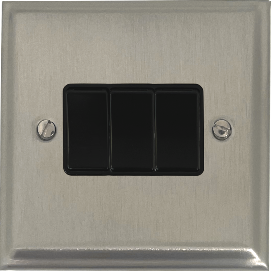 Deco Satin Nickel Light Switch (3 Gang/Black Switch) - G+H DSN3B