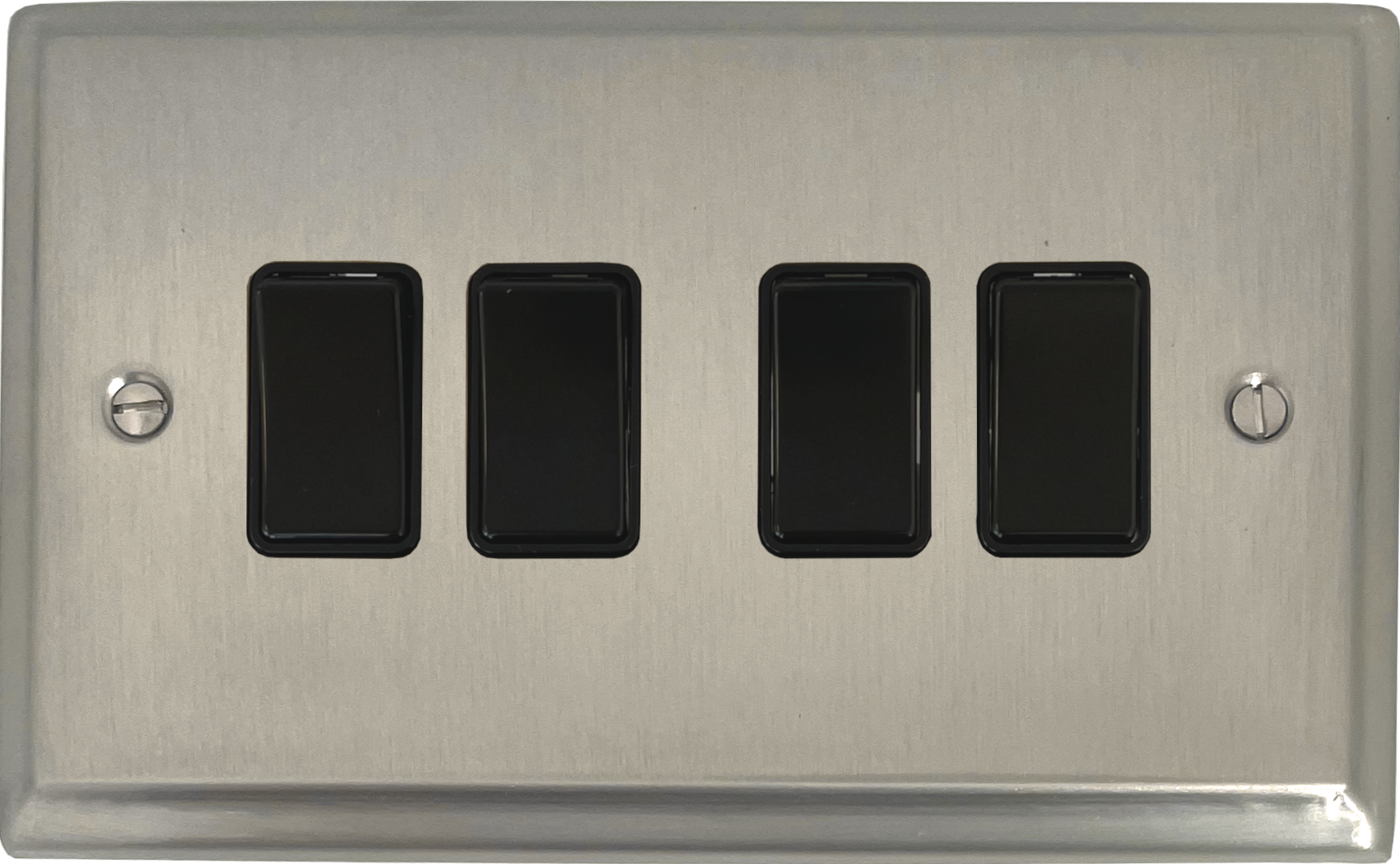 Deco Satin Nickel Light Switch (4 Gang/Black Switch) - G+H DSN4B