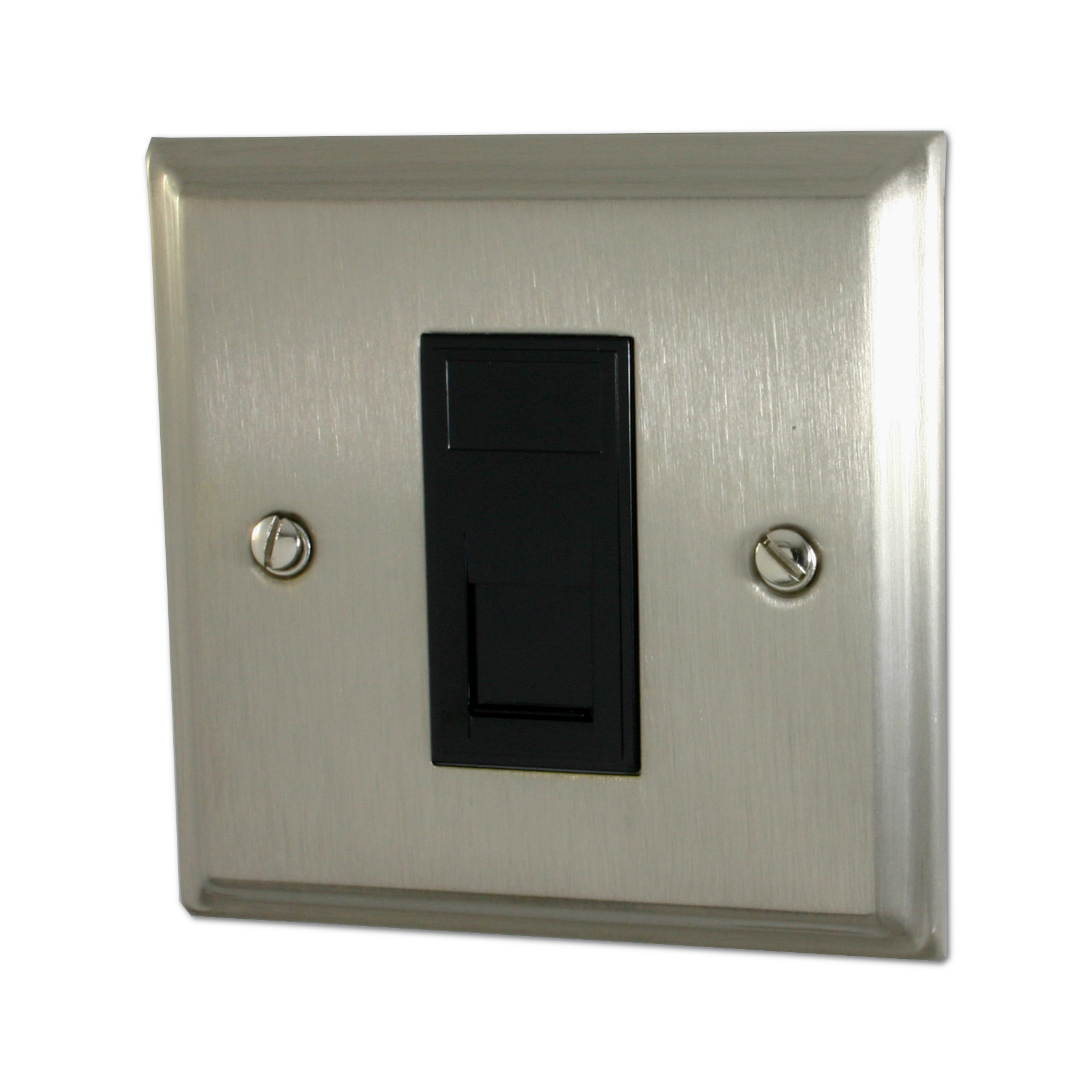 Deco Satin Nickel RJ45 Socket (1 Gang/Black Insert)