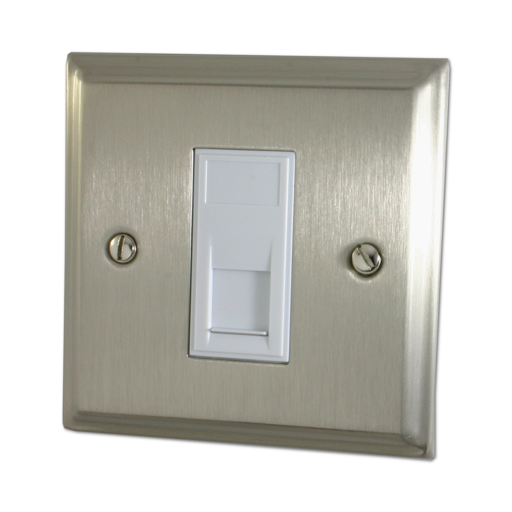 Deco Satin Nickel RJ45 Socket (1 Gang/White Insert) - G+H DSN61W