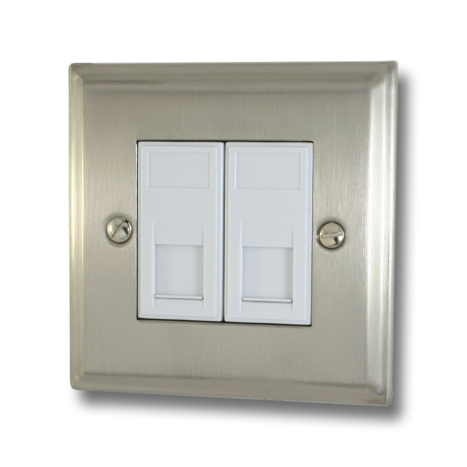 Deco Satin Nickel RJ45 Socket (2 Gang/White Insert)