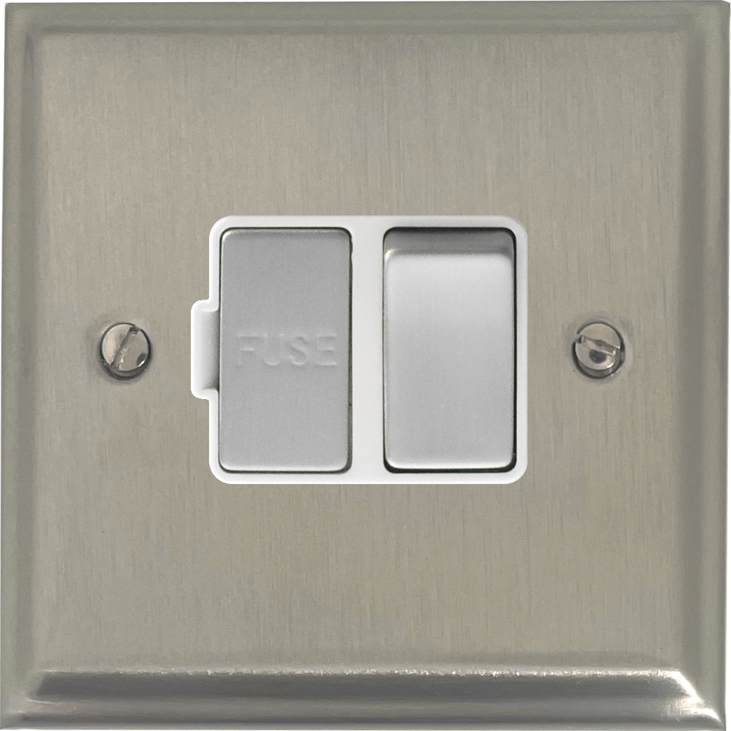 Deco Satin Nickel Switched Fused Spur (White Insert/Matching Switch) - G+H DSN257