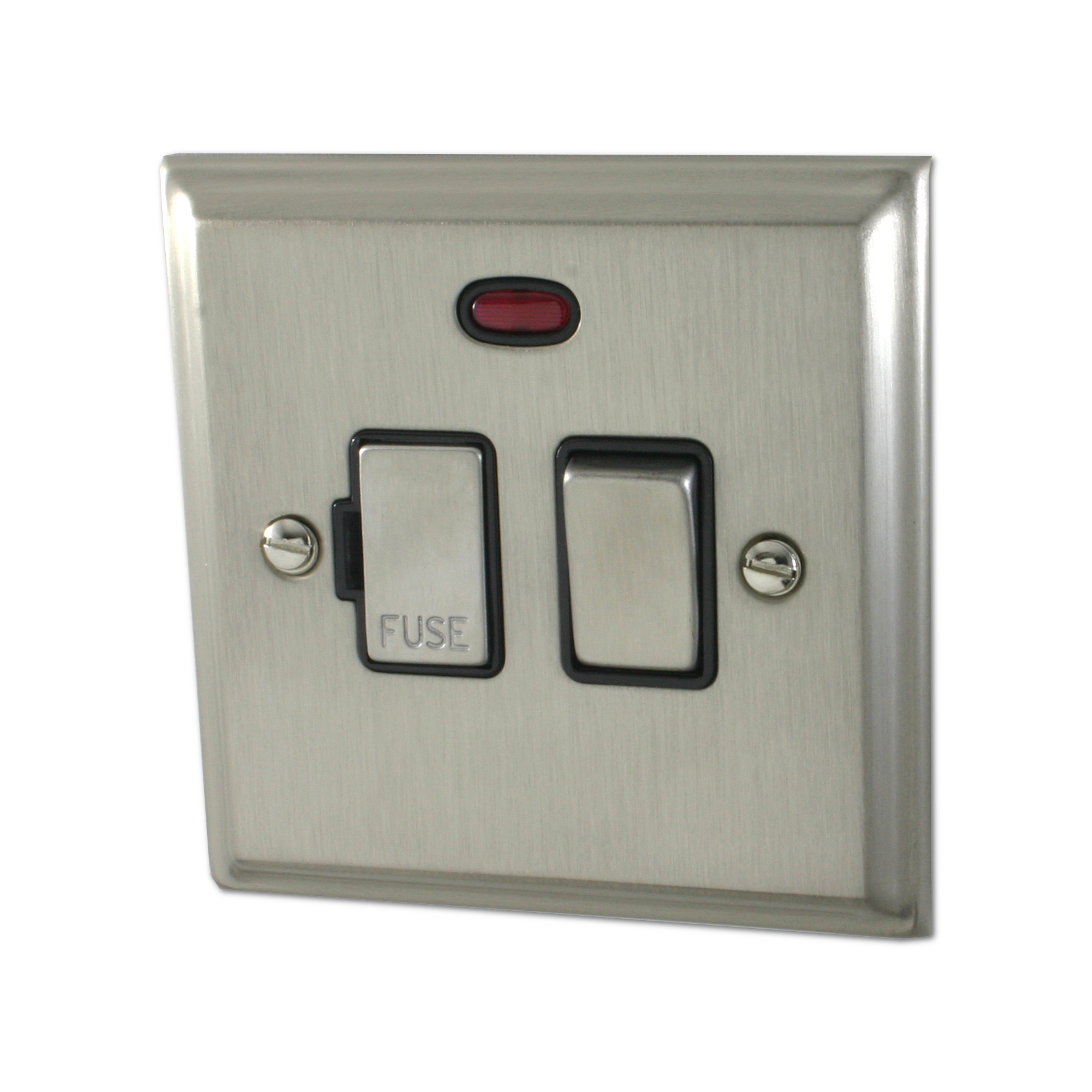 Deco Satin Nickel Switched Fused Spur with Neon (Black Insert/Matching Switch) - G+H DSN327