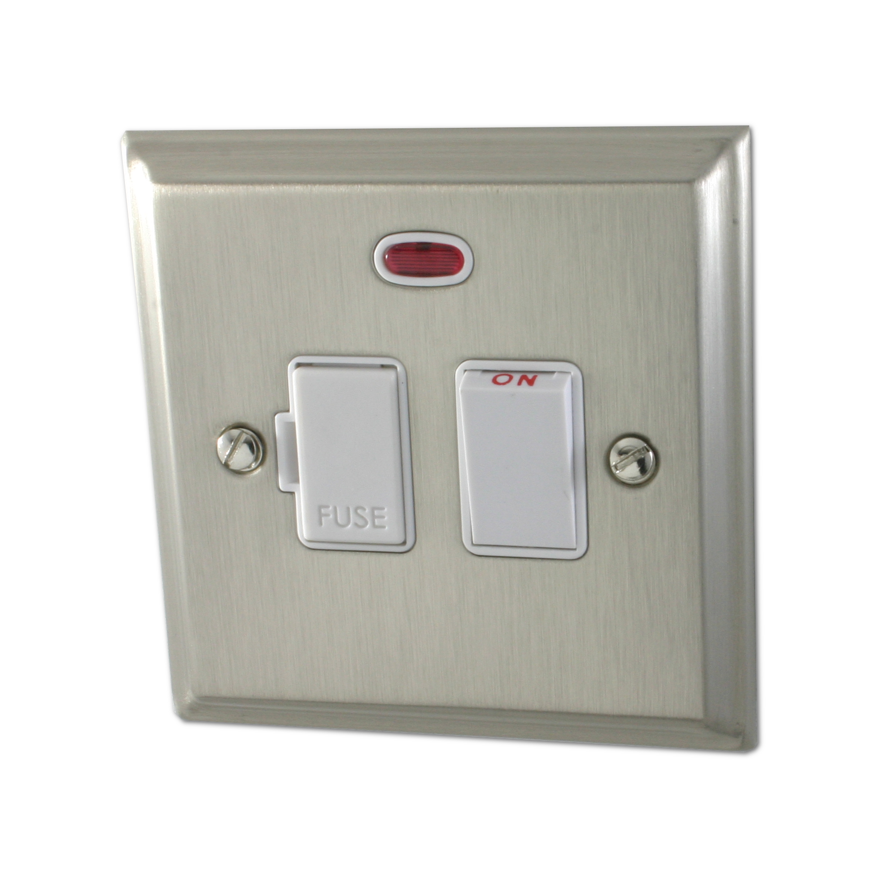 Deco Satin Nickel Switched Fused Spur with Neon (White Switch) - G+H DSN27W