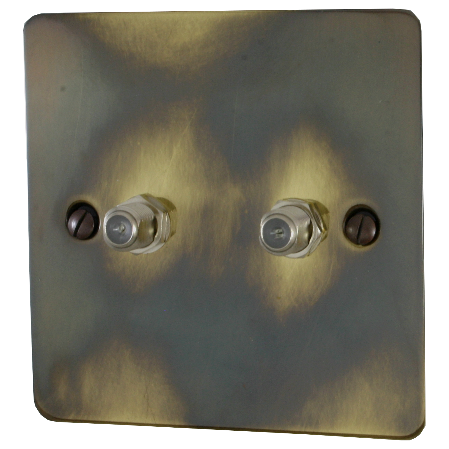 Flat Aged Brass Double Satellite Socket - G+H FAN237