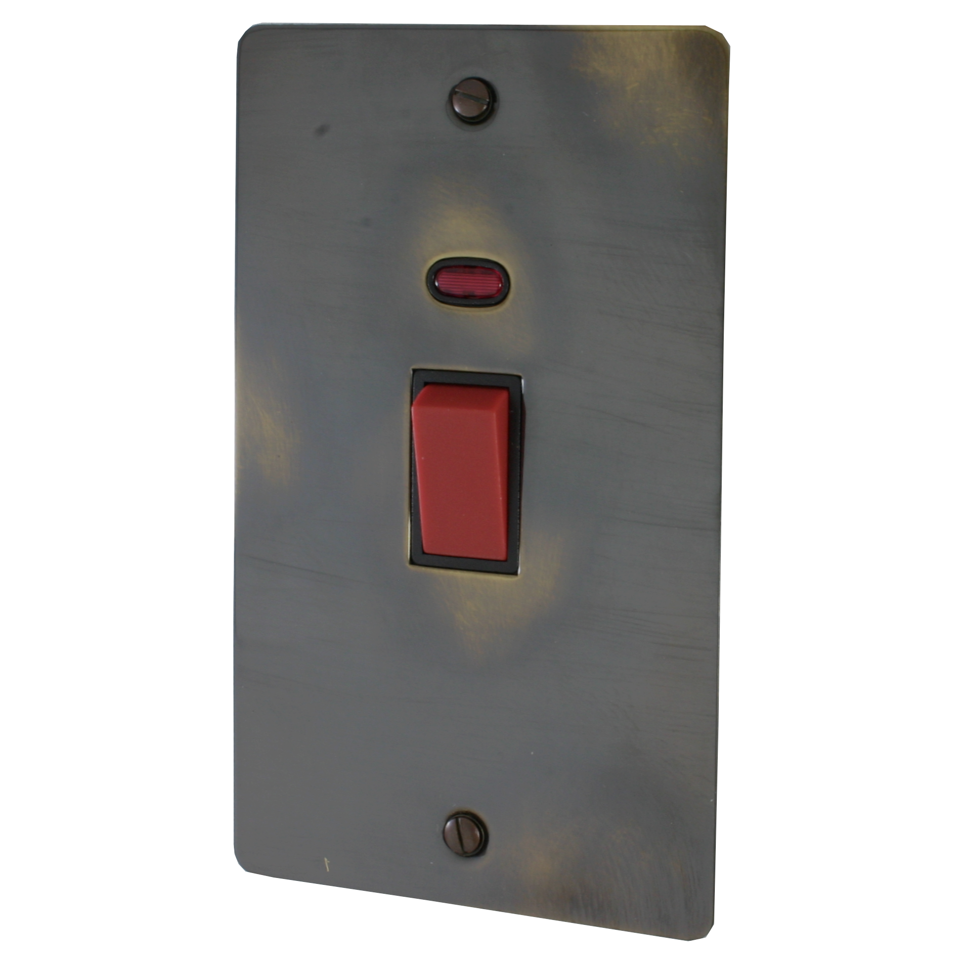 Flat Aged Brass DP Switch with Neon (Black Insert/Vertical Plate) - G+H FAN28B