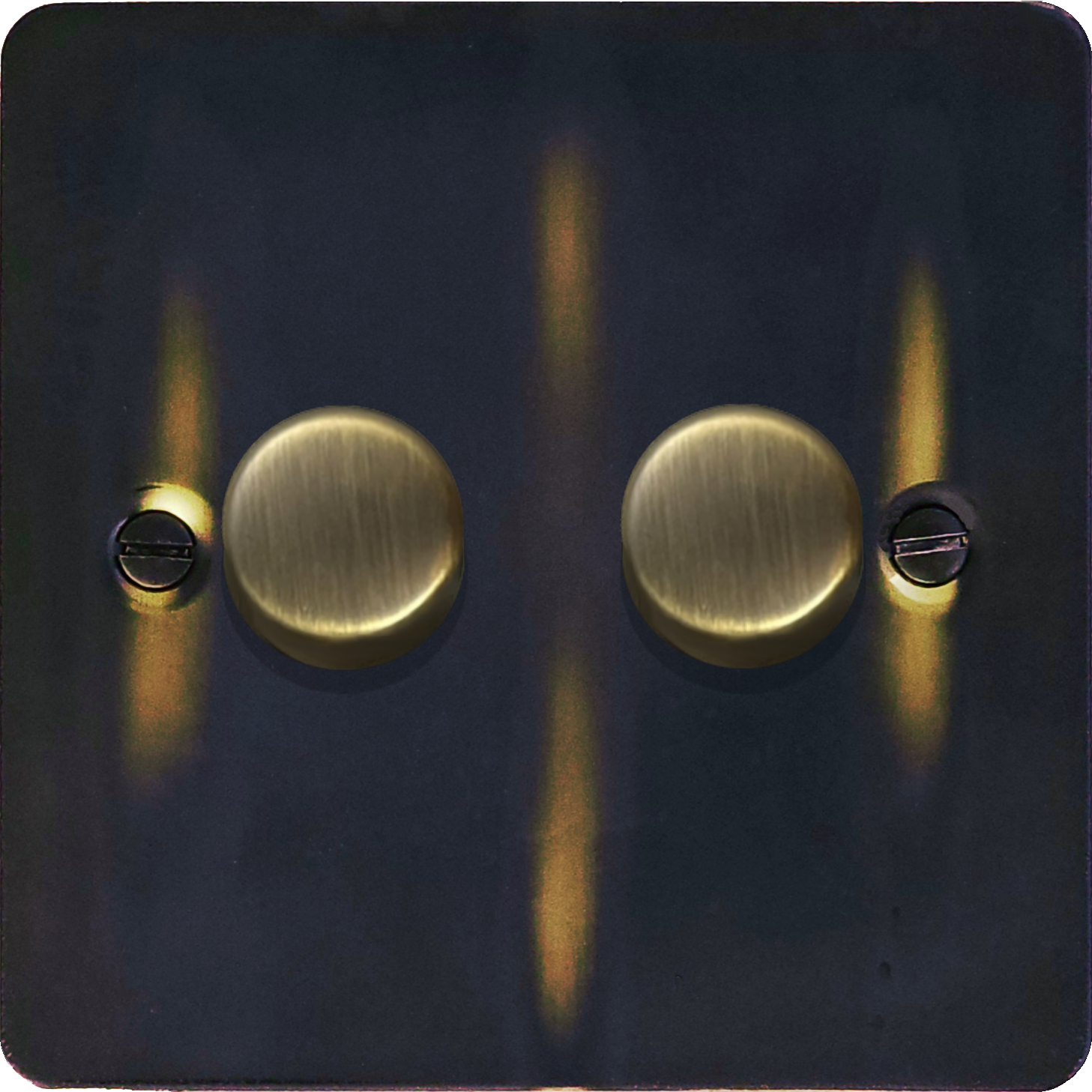 Flat Aged Brass LED Dimmer (2 Gang) - G+H FAN522