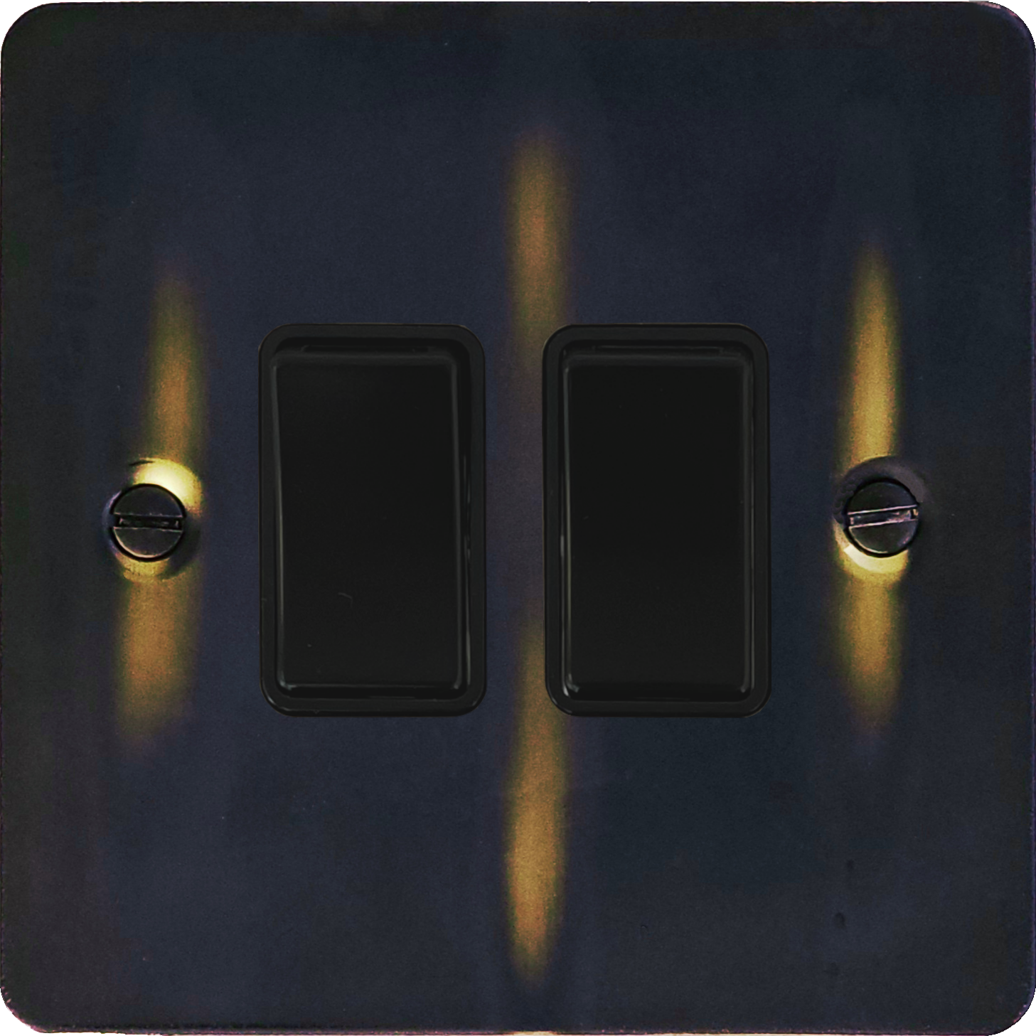 Flat Aged Brass Light Switch (2 Gang/Black Switches) - G+H FAN2B