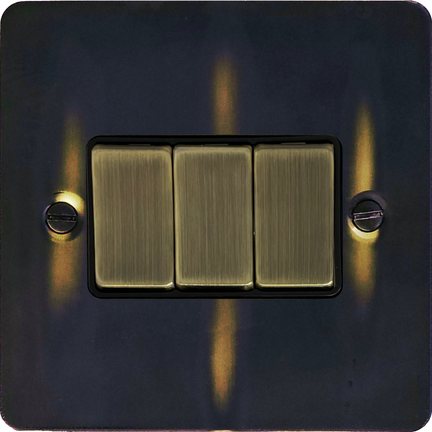 Flat Aged Brass Light Switch (3 Gang/Antique Brass Switches) - G+H FAN303
