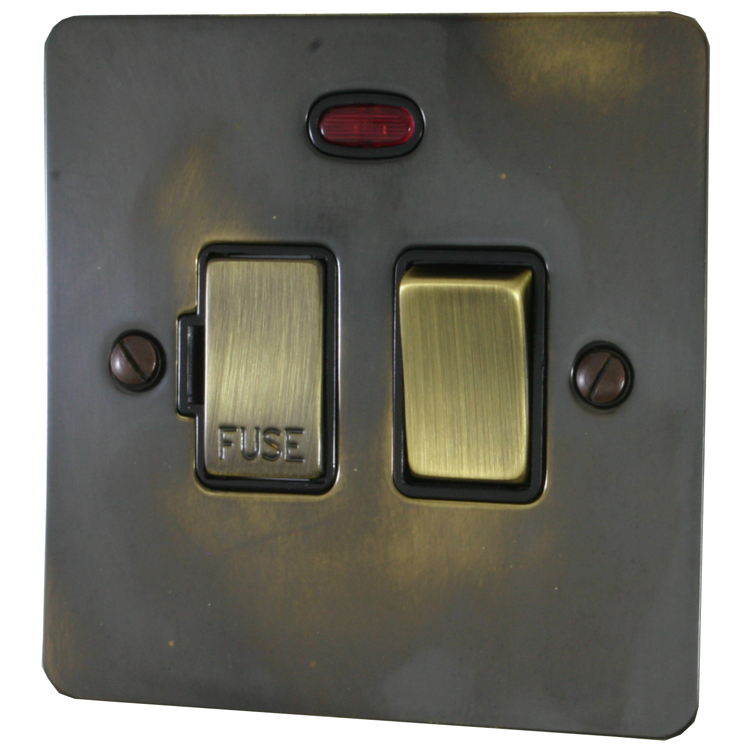 Flat Aged Brass Switched Fused Spur with Neon (Antique Brass Switch) - G+H FAN327