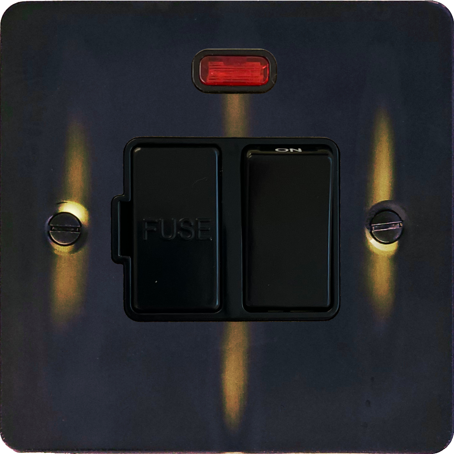 Flat Aged Brass Switched Fused Spur with Neon (Black Switch) - G+H FAN27B