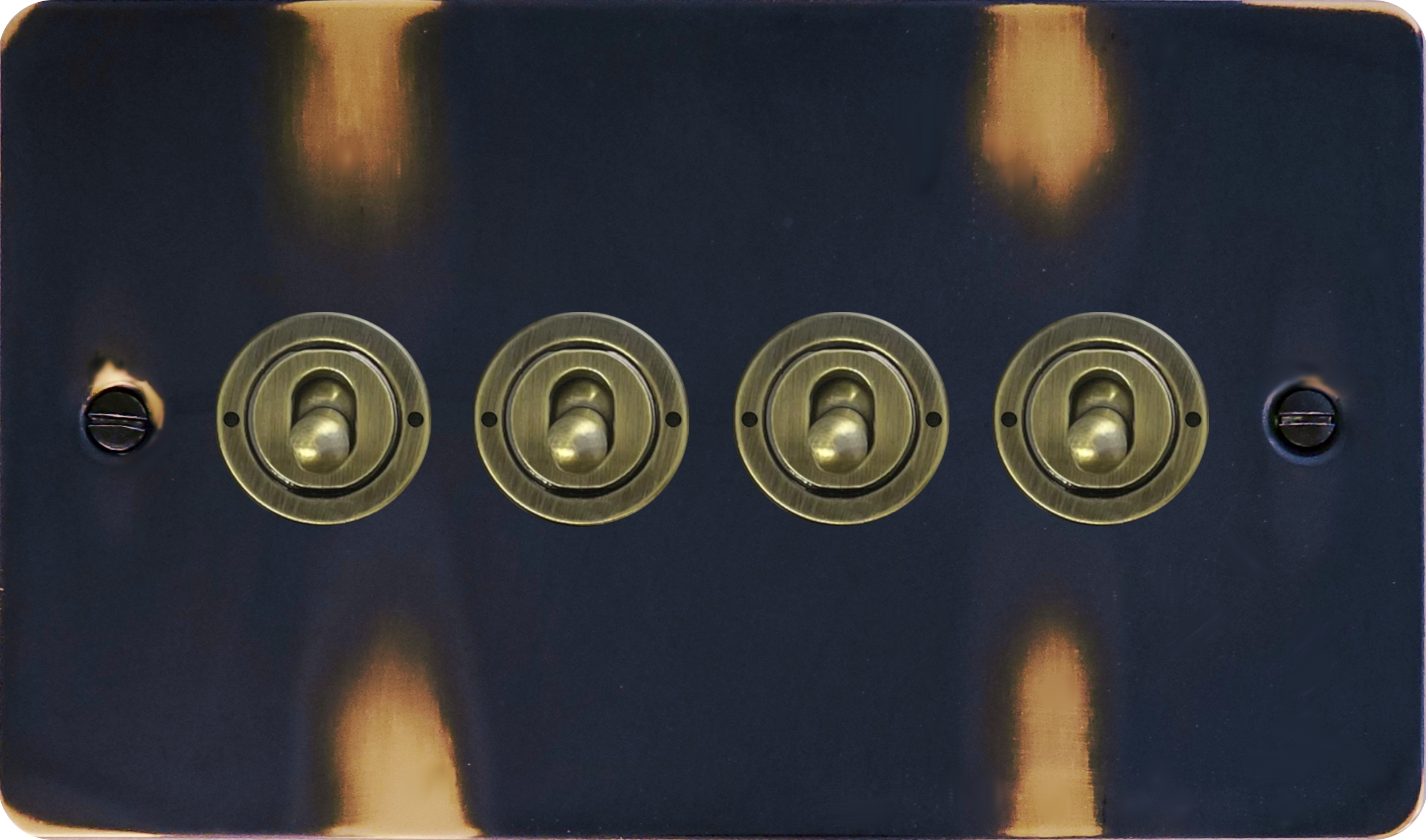 Flat Aged Brass Toggle Switch (4 Gang) - G+H FAN384