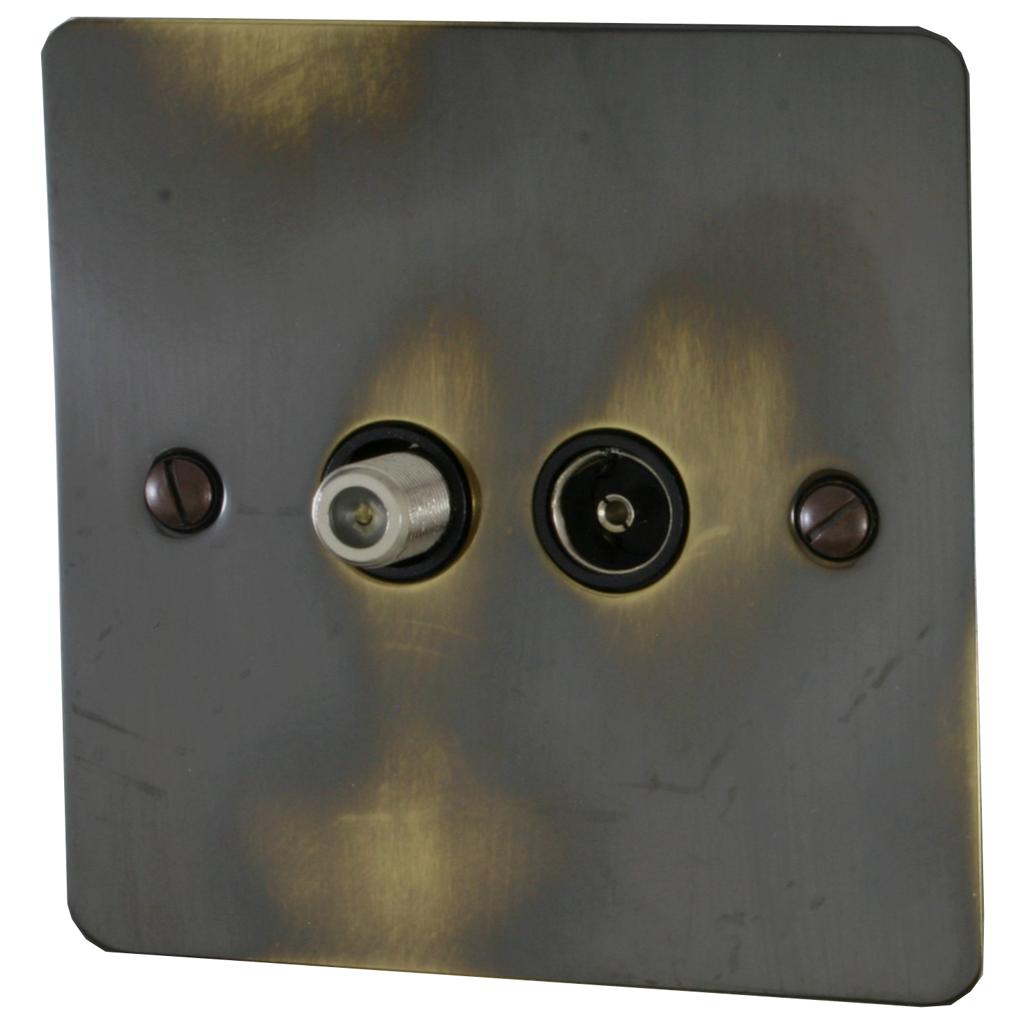 Flat Aged Brass TV/Satellite Socket (Black Insert)