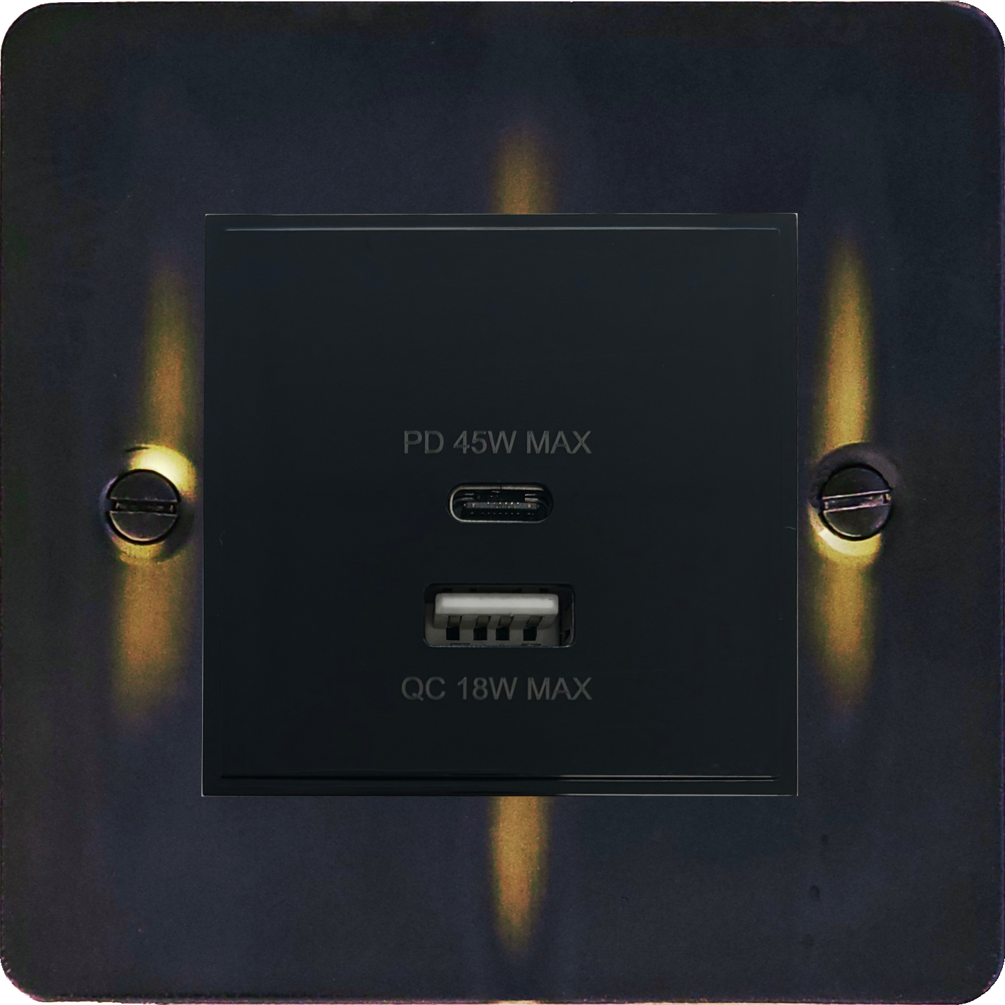 Flat Aged Brass USB Charger (Dual USB A + C Quick Charge) (Black Insert/1 Gang) - G+H FAN43B