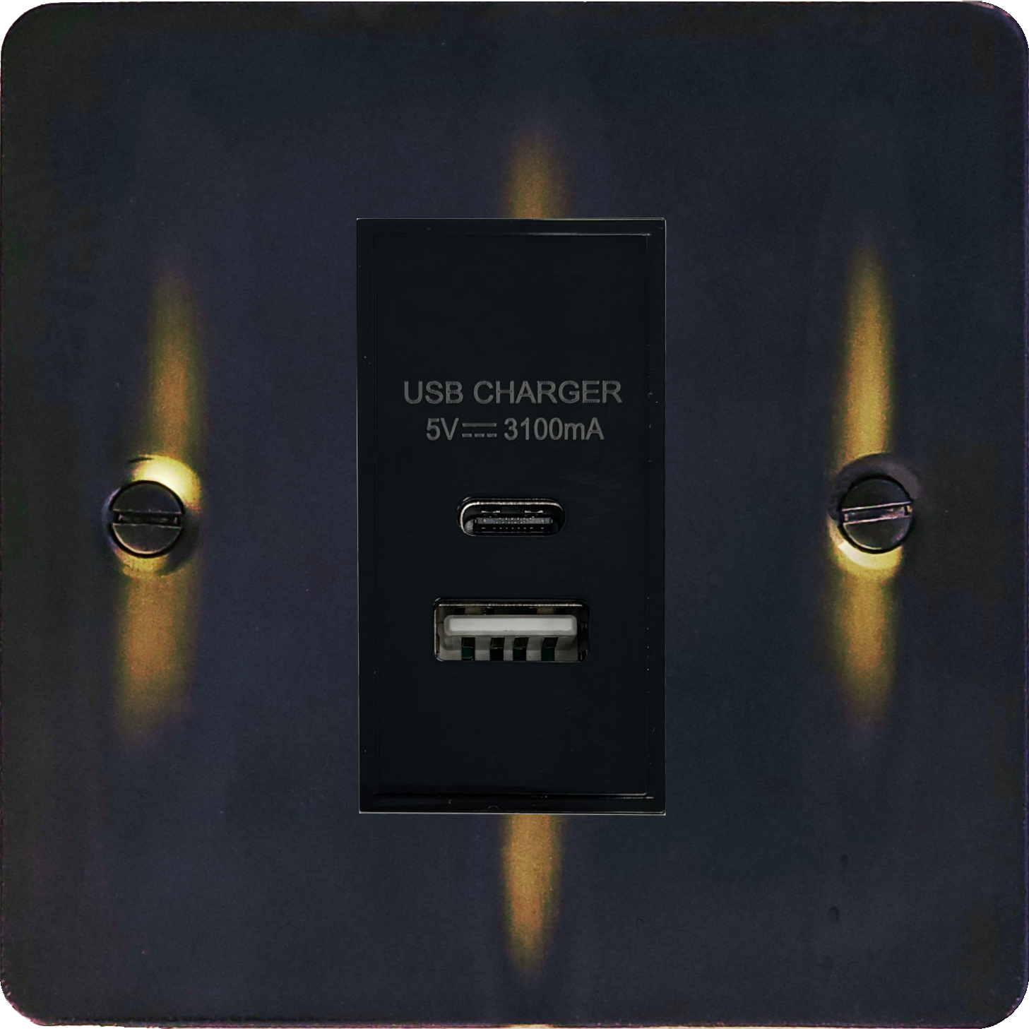 Flat Aged Brass USB Charger (USB-A and USB-C) (Black Insert/1 Gang) - G+H FAN41B